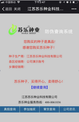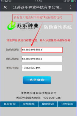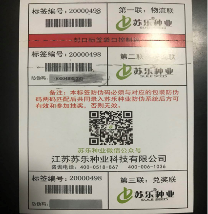 5.撥打蘇樂種業總部服務專線400-0518-867諮詢驗證真假和是否中獎